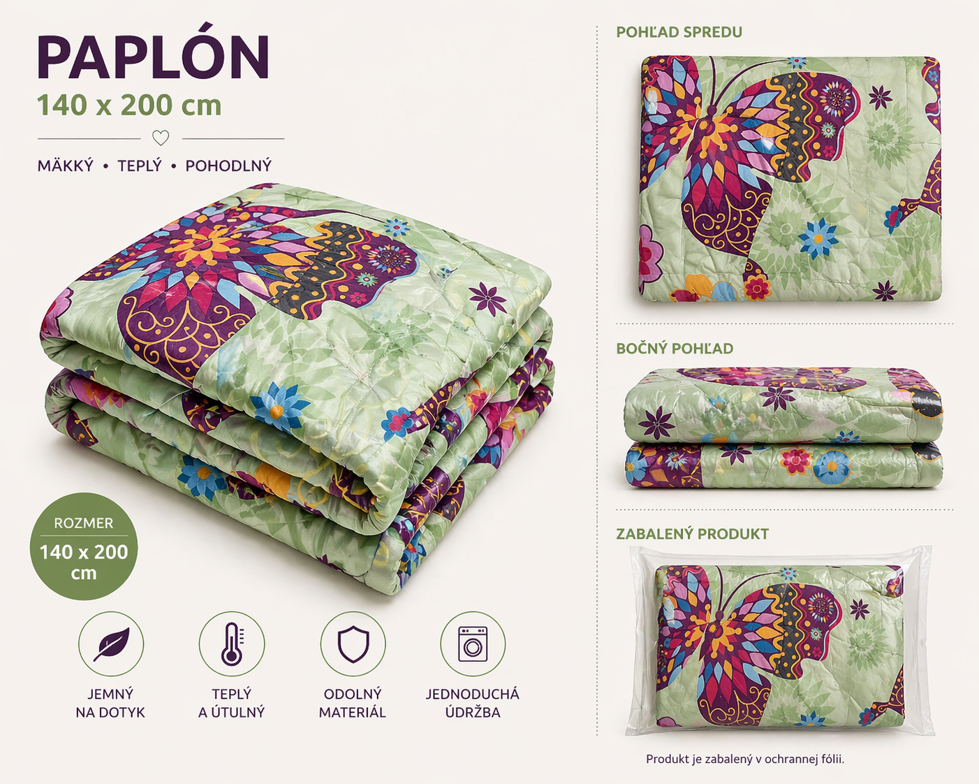 🛏️ Paplón 140 x 200 cm – Motýľ (1,80 kg)